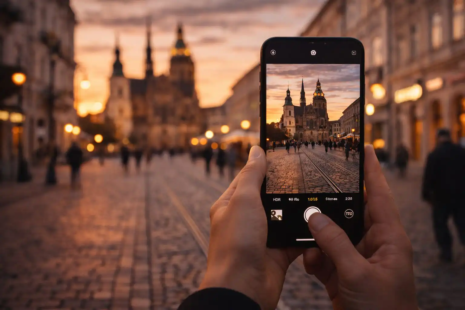 - Kontext: zahrň ľudí do popredia (siloueta, chôdza, bicykel). Fotka hneď žije.